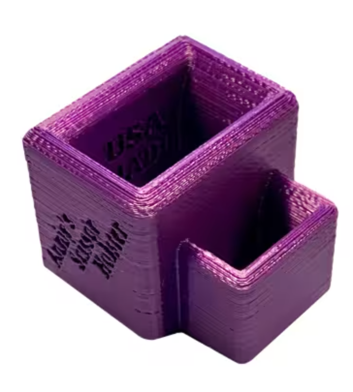 A one inch cube of exactly what you always needed to save your scissor and thread snips from separation anxiety! Gently adheres to any surface with nano tape and is not permanent. Ample room for two tools. Made in America by our grandchildren.