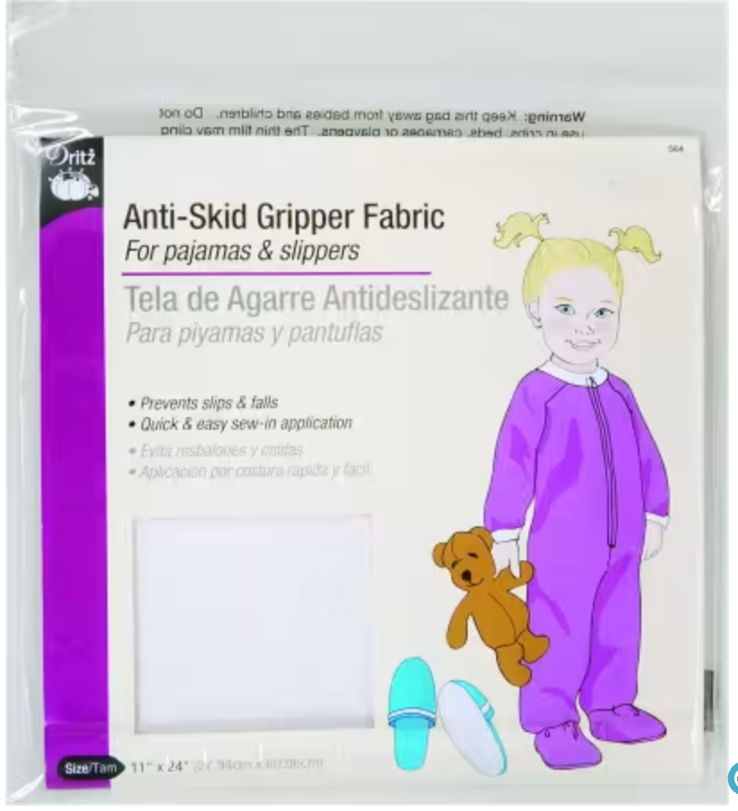 Sew the Dritz 11in x 24in Anti-Skid Gripper Fabric White onto your little one’s pajama feet soles and slippers to avert slipping and falling. You can also use this gripper fabric to prevent scratches on the base of your home decor items. This 100% cotton fabric, designed with anti-skid ERB dots, is easy to care for. For sewing on soles of pajamas feet and slippers. Provides a gripping and anti-skid surface to prevent slipping and falling. Can also be used on base of household items such as lamps and decorative items to prevent scratches. 100% cotton fabric/ERB anti-skid dots.