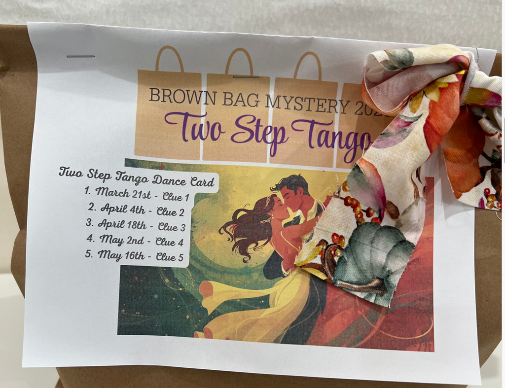 Get ready for an exciting fabric adventure with the Brown Bag Symposium Two Step Tango Bags! Starting January 30th, these exclusive mystery fabric bundles will be available for purchase, each containing 6 1/2 yards of premium fabric—perfect for creating stunning projects with the Brown Bag Mystery Pattern. In addition to the fabric, your purchase includes access to an online class through Facebook with Karen Montgomery, where you'll learn how to bring your mystery bag to life using the pattern. Plus, you'll join an exclusive Facebook group for even more fun and inspiration! Clues about your mystery bag will be mailed directly to you through First Class Mail, and here's when to expect them: Clue 1 – March 21st Clue 2 – April 4th Clue 3 – April 18th Clue 4 – May 2nd Clue 5 & Big Reveal – May 16th. Follow the clues as the mystery unfolds, building excitement toward the final reveal on May 16th. Don’t miss out—purchase your bag and use either Tango Foundations or several rulers to perfect your Tango Dance, join the exclusive Facebook group, and be part of the fun with Karen Montgomery's online class!