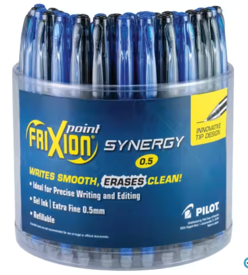 Never write a mistake again guaranteed! Pilot FriXion Point erasable gel ink pens allow you to write, erase and rewrite repeatedly without damaging documents. FriXion Point has an extra fine point, for those who appreciate precision writing, and the unique thermo-sensitive ink is formulated to deliver both vibrant color and smooth writing. Great for editing, calendars and planners and so much more!