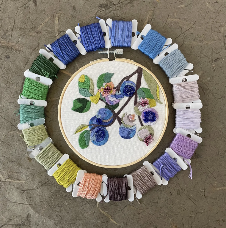 Kit includes: DMC embroidery floss, beads, full color sprinted linen/canvas fabric, wooden hoop, embroidery needle, beading needle and full printed instructions