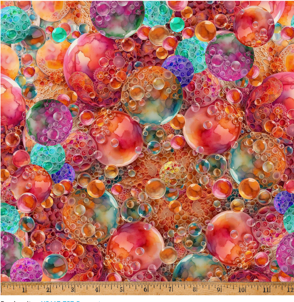Bubblelicious by Candy Quilt Design for Hoffman Fabrics features gorgeous geometric bubbles, blooms, tiles and ombre in stunning shades of pink, turquoise, teal, blue, rust, red, green, purple, and black.