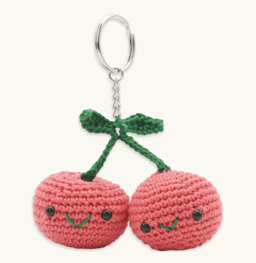 Add some colour to your bag with the Cherries Bag Pendant. Every (school) bag needs one! This kit contains a pattern, quality 100% cotton yarn, and all of the materials needed to get to work (excl. crochet hook). The Cherries are approximately 8 cm tall and are made with a 2.5 mm crochet hook.