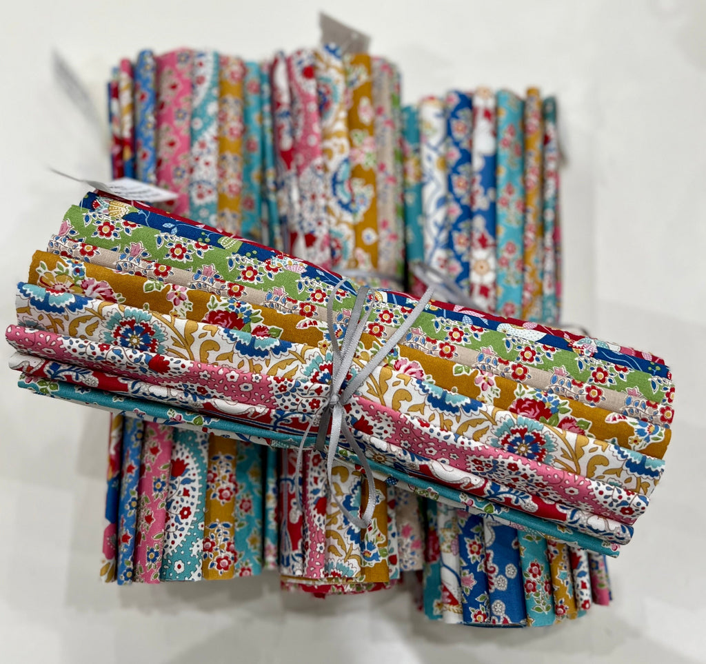 Jubilee Cupcake Rolls- 21 different fabrics 10"  (1/2 wof), can easily be made into 2 5"strips or 2 10" squares, total 42 1/2 strips