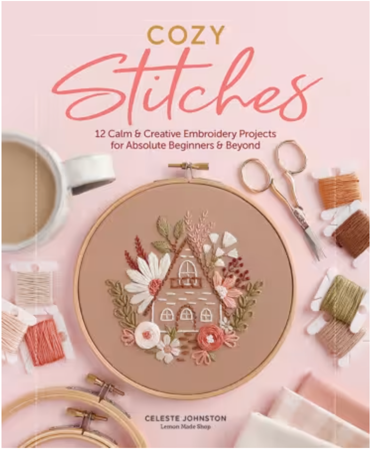 A gentle introduction to the calming art of embroidery! Slow down and experience the therapeutic benefits of slow stitching with these 12 charming embroidery projects for absolute beginners and beyond! Written by popular fiber art designer and author Celeste Johnston, the projects focus on uplifting messages, lovely florals, and the comfort of home. From fluffy sweaters and stacks of books to gentle affirmations and meditative mandalas, you’ll feel the warmth with every stitch. Each project includes a detailed reference photograph, step-by-step instructions, a full-sized perforated pattern, and everything you need to know about stitches, thread, and materials. It’s a perfect book for beginners and advanced stitchers alike! • 12 Skill-Building Embroidery Projects: Enjoy a diverse array of cozy subjects that gradually build your skills as you work through them. • Easy-to-Follow Stitch Diagrams: Every stitch, floss color, and strand count is provided in an all-in-one labeled reference image for each project. • Reflection and Encouragement: Inspiring quotes, reflective journal entries, and mindful prompts enhance the relaxing benefits of stitching. • Practice and Guidance: With a cozy quilt sampler project to help you practice each stitch and a complete stitch guide that explains every stitch, beginners will have no trouble diving right in! • Full-Sized Patterns: Expertly designed full-sized patterns for each project are presented on perforated pages for easy use as well as in downloadable form. So put the kettle on, gather your stitching supplies, and enjoy the relaxing process of creating these twelve cozy embroidery projects. It’s time to start stitching!