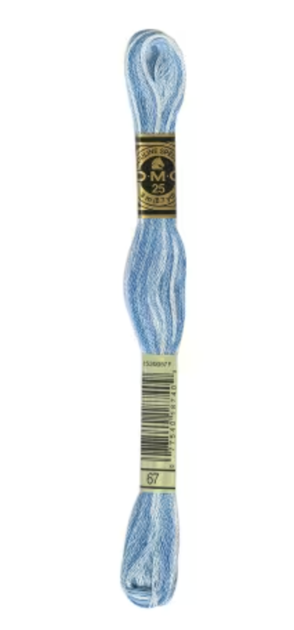 Ideal for stitching on all types of fabric, this superior quality thread is made from 100% long staple Egyptian cotton and double mercerized for a brilliant sheen. It is comprised of six size-25 strands that can be easily separated, allowing you to adjust the thickness of your stitching thread. DMC Floss is the most recommended and widely distributed thread in the world, with colors that are 100% colorfast and fade resistant. Color: Variegated Blue Made of: 100% Cotton Size: 8.7yds per skein