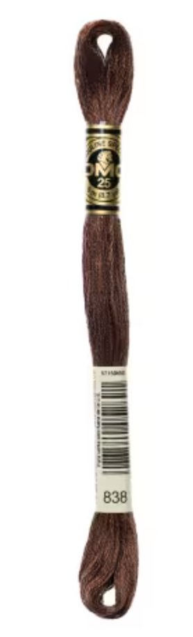 Ideal for stitching on all types of fabric, this superior quality thread is made from 100% long staple Egyptian cotton and double mercerized for a brilliant sheen. It is comprised of six size-25 strands that can be easily separated, allowing you to adjust the thickness of your stitching thread. DMC Floss is the most recommended and widely distributed thread in the world, with colors that are 100% colorfast and fade resistant. Color: Brown Made of: 100% Cotton Size: 8.7yds per skein
