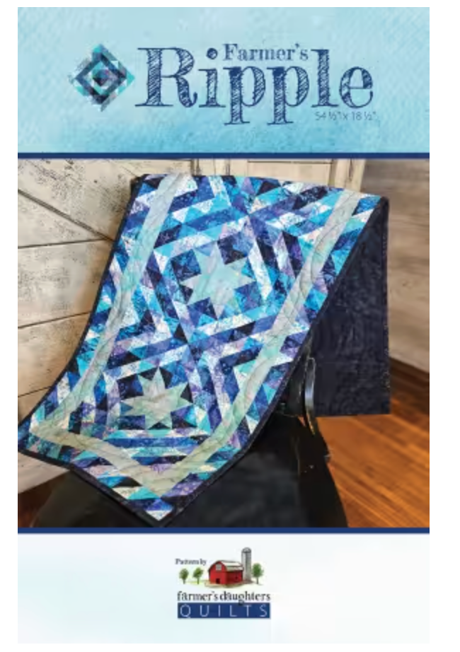 The Farmer's Ripple table runner quilt pattern is truly striking, thanks to the intricate detail achieved through the use of half-square triangles. The table runner finishes at 18.5" x 54.5". The pattern includes instructions to create oversized half-square triangles, allowing you to trim them for a perfect finish. With full-color instructions and clear, detailed graphics, the Farmer's Ripple pattern is designed for confident beginners ready to take on a more detailed project. The end result is a stunning table runner that showcases your growing quilting expertise.
