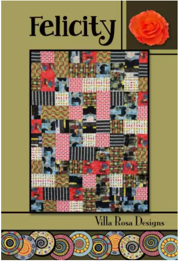 Perfect for a collection of fat quarters, Pat Fryer’s design takes just nine. All are simply cut into large squares and rectangles. Twelve large blocks sew up quickly and get tossed around for a colorful quilt.