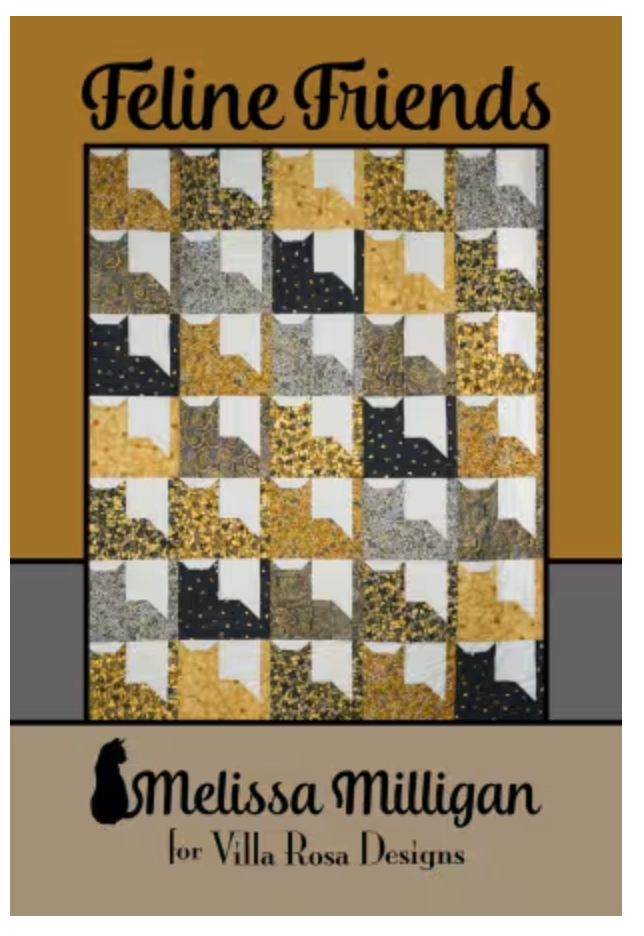 Melissa Milligan has lots of cats - and so does her quilt. It is so easy to make 35 cats with 3 simple flip corners and 4 seams - no triangles needed. Half yard cuts with a yard of background makes a nice litter.