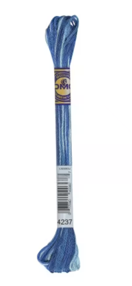 DMC Color Variations can be used by stitchers of all skill levels and with all embroidery techniques. DMC Color Variations is a stunning multi-colored thread that allows you to create a subtly colorful piece without ever having to change thread. It has been double mercerized for a gorgeous sheen. This beautiful thread is made up of six size 25 easily separated strands, which allows you to customize the thickness of the thread by choosing the number of strands. It's made from 100% long staple cotton, is fade resistant and has guaranteed color consistency from one skein to the next. Color: Variegated Blue Made of: 100% Cotton Size: 8.7yds per skein