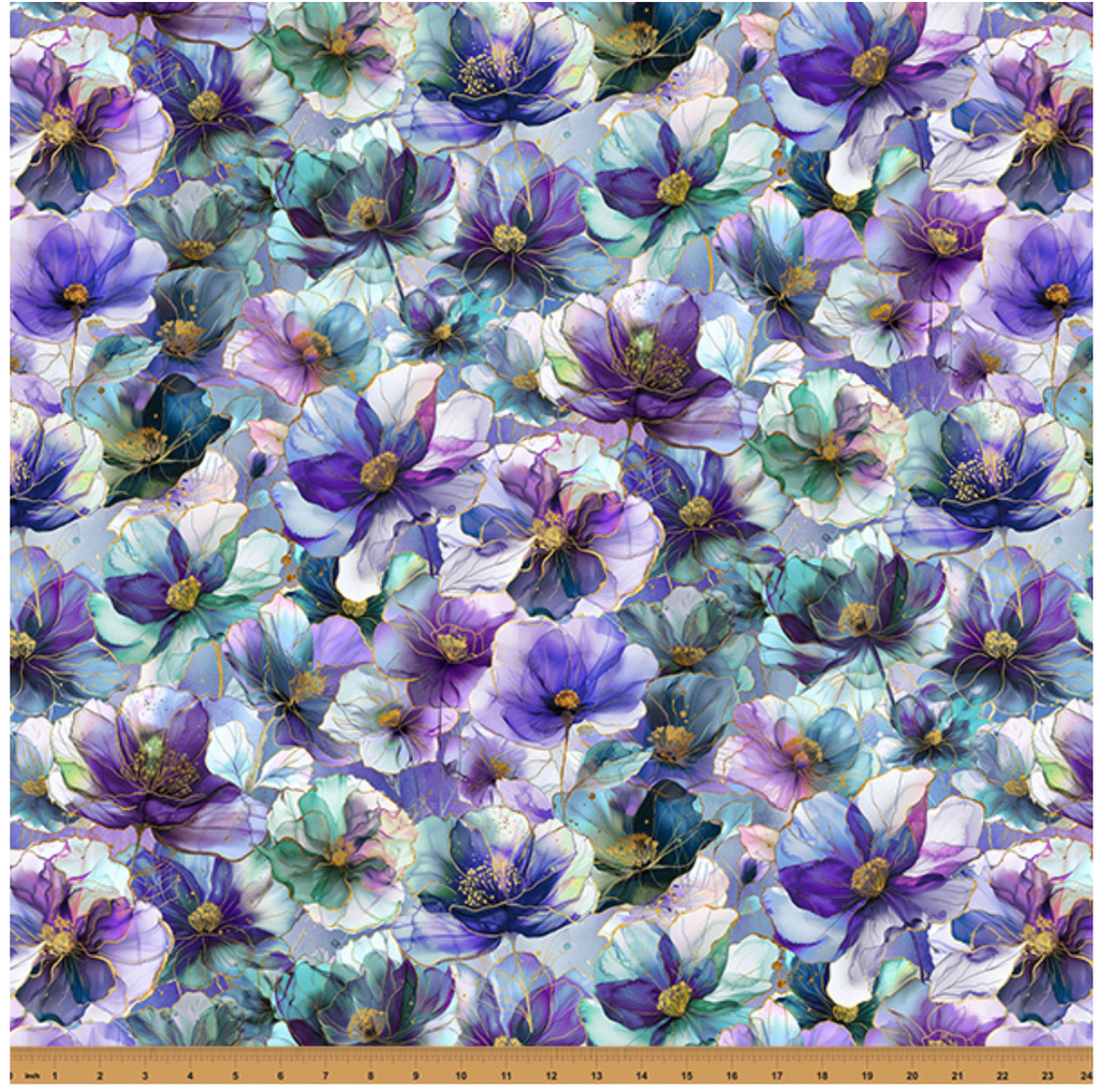 The Flourish Collection by Hoffman Fabrics bursts with vibrant color and painterly texture, bringing a sense of movement and depth to every print. Inspired by the beauty of blooming gardens and nature’s rich palette, this collection blends soft watercolor effects with luminous shades of purples, blues, pinks, and greens. Each fabric flows seamlessly into the next, creating a harmonious mix that’s perfect for quilts, home décor, and statement projects. With its artful design and radiant tones, Flourish truly lives up to its name—celebrating color, creativity, and the joy of fabric.