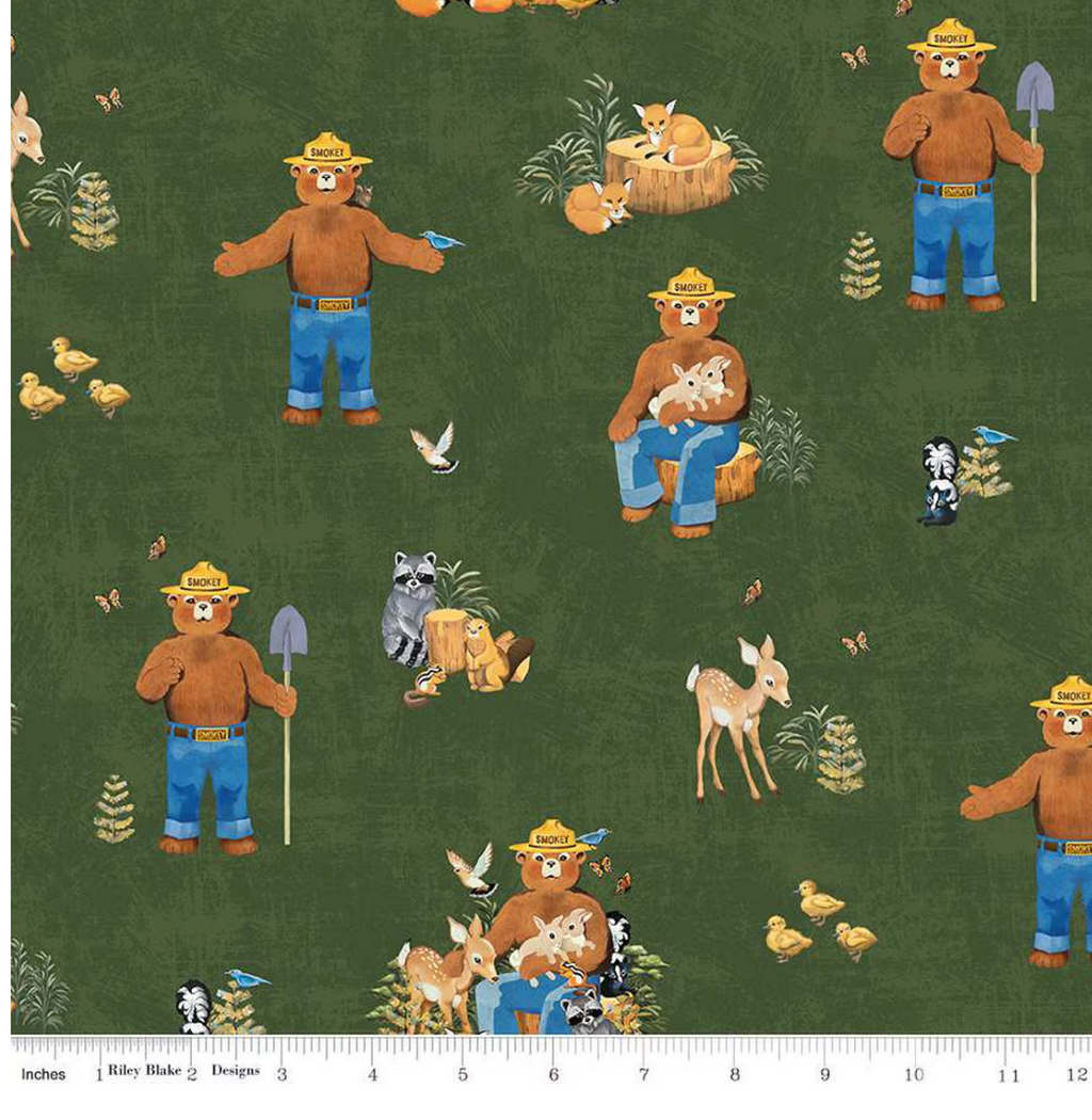 The Friends of Smokey Bear collection for Riley Blake Designs is great for quilting, apparel and home decor. These prints feature Smokey Bear and his forest friends with forest fire prevention text