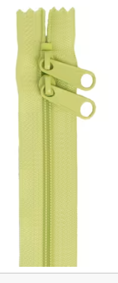 30in Double Slide Handbag Zipper is perfect for purses, totes and bags. The 4.5 nylon coil is strong and durable zip after zip and the wide zipper tape make for easy installation. Color: Green Length: 30in Tape Content: Nylon