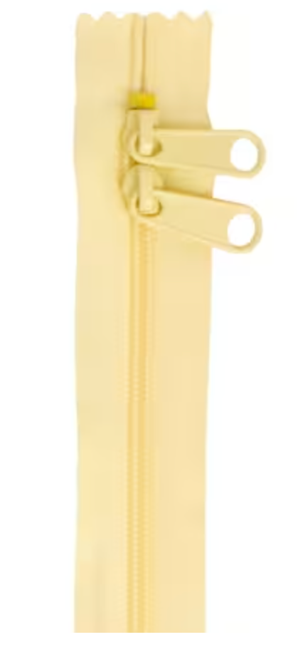 30in Double Slide Handbag Zipper is perfect for purses, totes and bags. The 4.5 nylon coil is strong and durable zip after zip and the wide zipper tape make for easy installation. Color: Yellow Length: 30in Tape Content: Nylon
