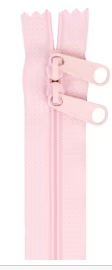 30in Double Slide Handbag Zipper is perfect for purses, totes and bags. The 4.5 nylon coil is strong and durable zip after zip and the wide zipper tape make for easy installation. Color: Pink Length: 30in Tape Content: Nylon