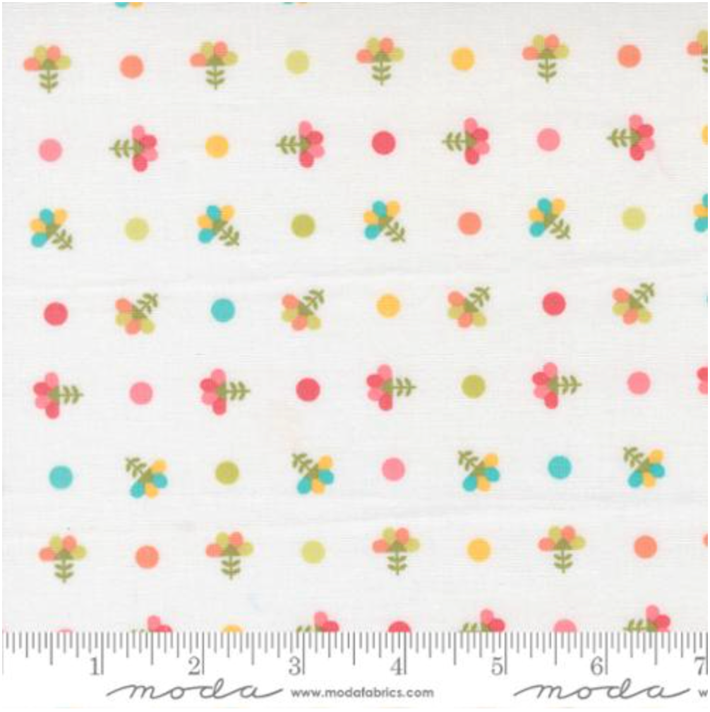 In the Garden is a fresh collection designed by Corey Yoder for Moda Fabrics that captures the joy of sunny days and blooming flowerbeds. Decorate your summer projects with this lovely white fabric scattered with pink, yellow, and aqua florals.
