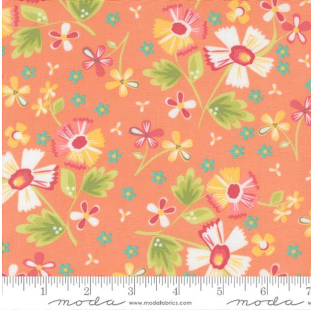 In the Garden is a fresh collection designed by Corey Yoder for Moda Fabrics that captures the joy of sunny days and blooming flowerbeds. Decorate your summer projects with this lovely white fabric scattered with pink, yellow, and aqua florals.