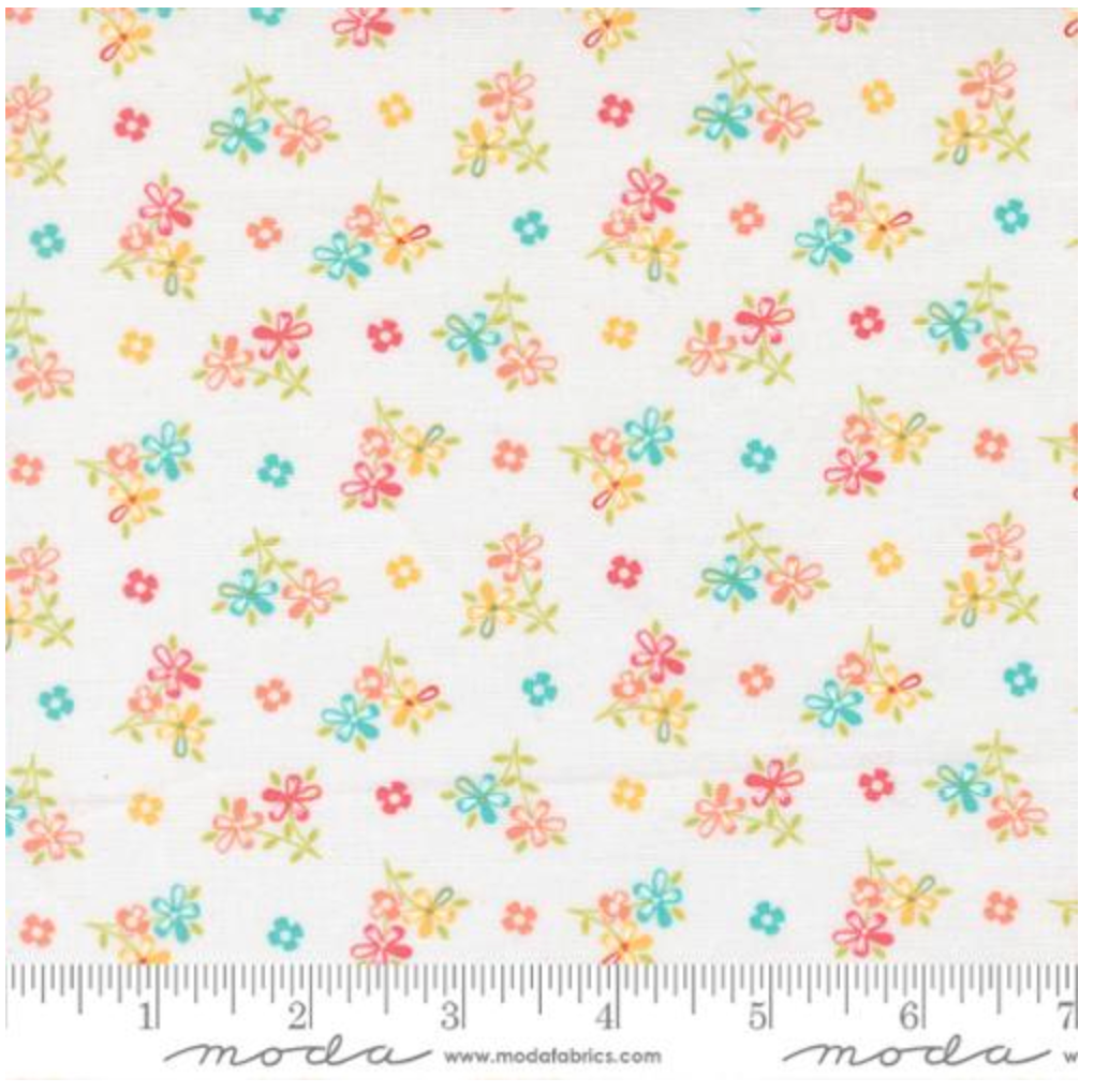 In the Garden is a fresh collection designed by Corey Yoder for Moda Fabrics that captures the joy of sunny days and blooming flowerbeds. Decorate your summer projects with this lovely white fabric scattered with pink, yellow, and aqua florals.