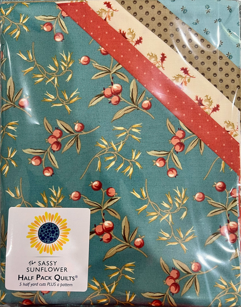 Sassy Sunflower Half Pack Quilts™ Kit Get creative with this all-in-one kit that’s perfect for making a cheerful quilt or a stylish tote. Inside, you’ll find: 2.5 yards of fabric — five half-yard cuts in beautifully coordinated colors One Sassy Sunflower Half Pack Pattern — pick your favorite from our black and white pattern options to match with your fabric bundle Whether you're quilting or crafting a tote, this kit gives you a great head start. A few things to keep in mind: Quilt projects will still need backing and binding fabrics Tote projects like the Tippy Tote require additional interfacing and batting Kits and patterns are bundled together and can’t be sold separately These kits are always full-price and not part of any sales or discounts