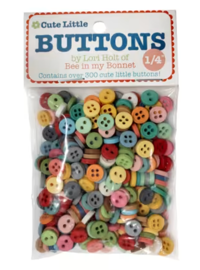 This bag of 1/4in Cute Little Buttons by Lori Holt of Bee in my Bonnet includes 300 buttons in Lori's colors. Color: Assorted Made of: Plastic Use: Buttons Size: 1/4in Included: 300 buttons