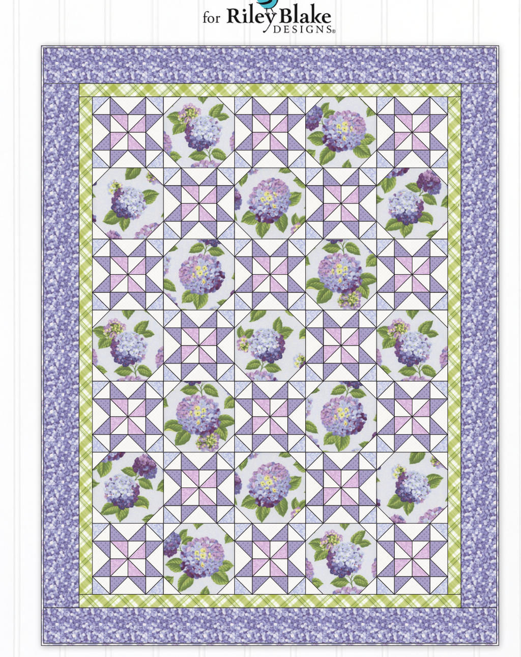 Patchwork Quilt in Blue-Hydrangea In the Garden Kit- Top & Binding 51.5x67.5