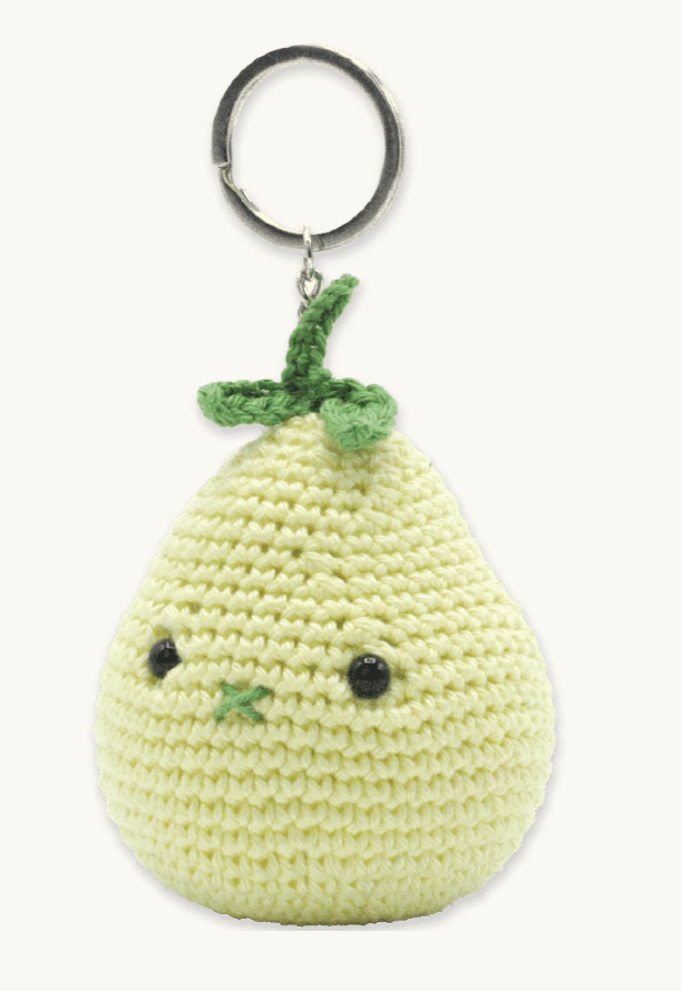Create a fun addition to your bag with the Pear bag pendant. Every (school) bag needs one! This kit contains a pattern, quality 100% cotton yarn, and all of the materials needed to get to work (excl. crochet hook). The Pear is approximately 8 cm tall and is made with a 2.5 mm crochet hook