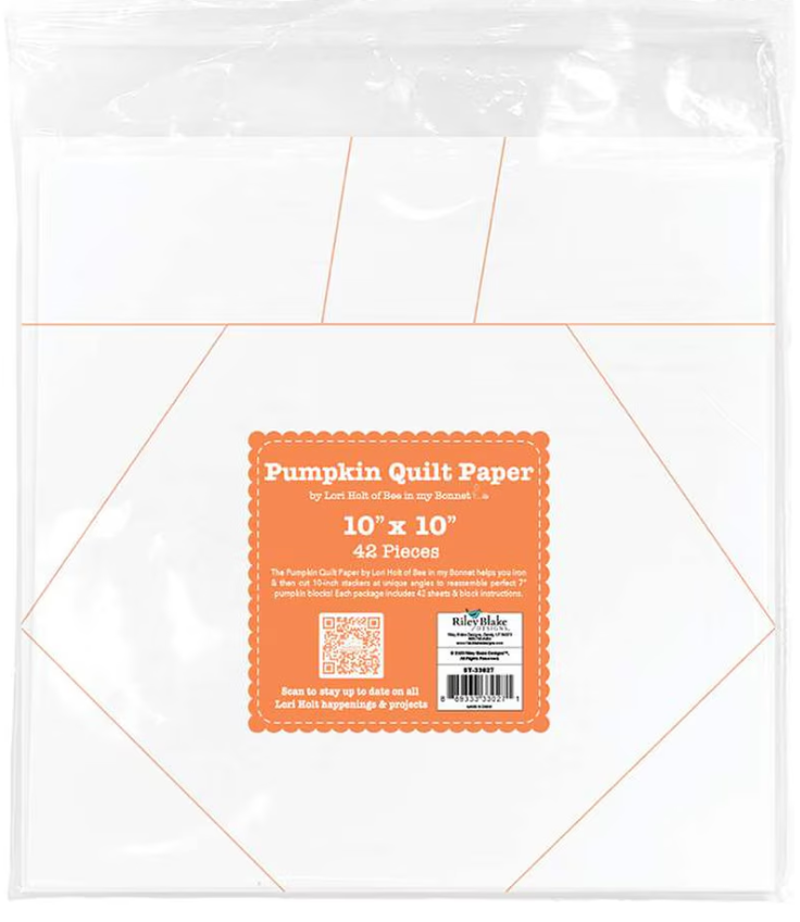 The 10" Pumpkin Quilt Paper by Lori Holt of Bee in my Bonnet is iron-on paper that helps you cut out pumpkins from 10-inch stackers at unique angles to reassemble as a fun 7" finished Pumpkin Quilt Block. Each package includes 42 sheets. These papers are needed to make Lori's Pumpkin Paper Quilts featured on the Autumn storyboard. Instructions for the block will be included with the papers.