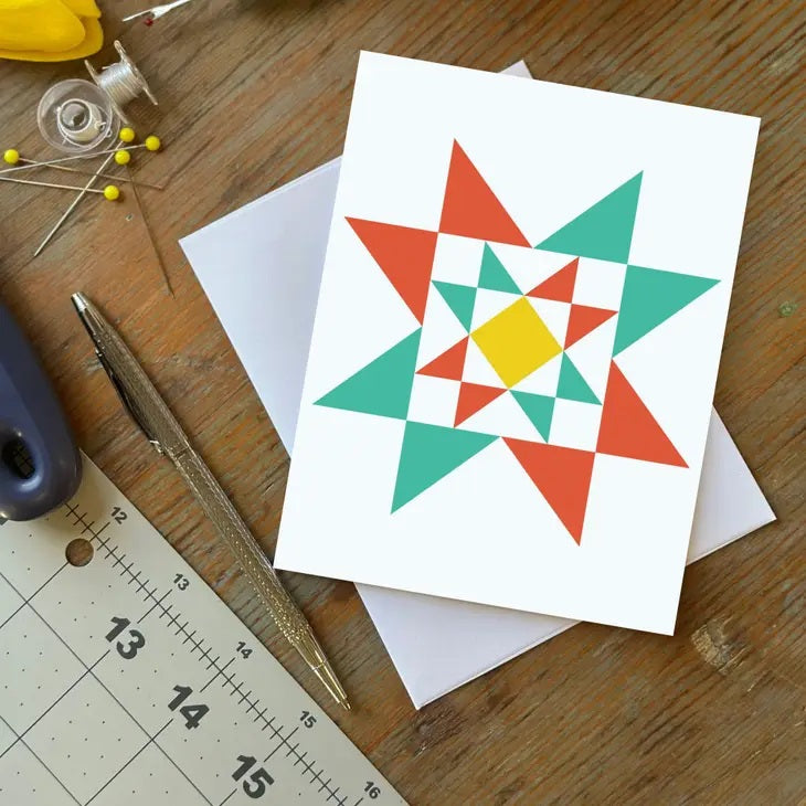 Quilt Star Solid Red and Teal Multicolor Notecard w/envelope