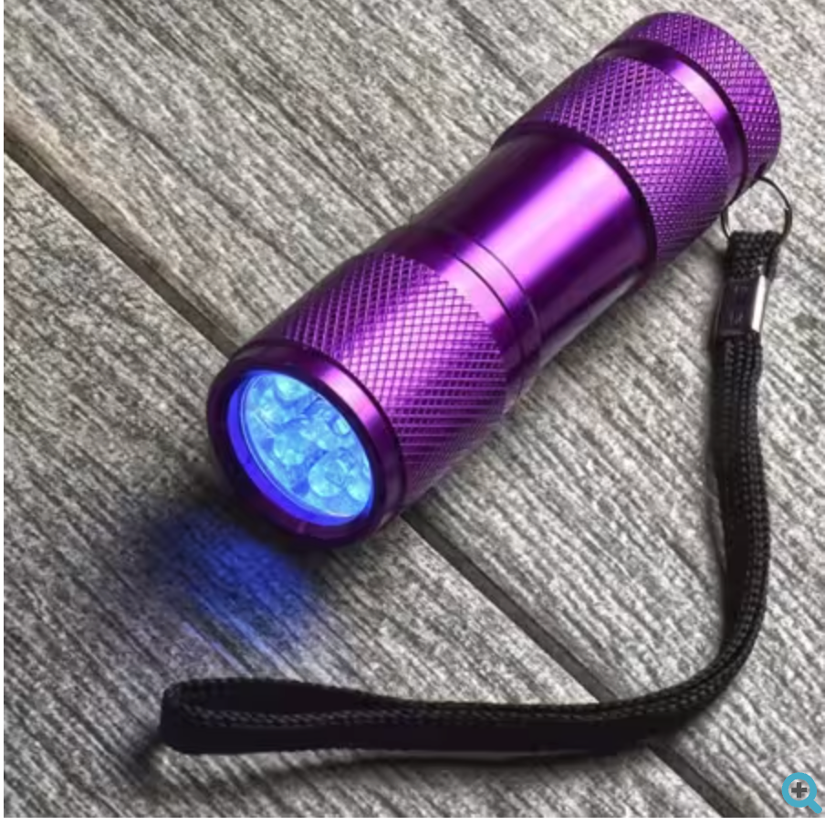 So many uses for this flashlight. But for the quilter it allows you to see white on whites. Aluminum body with 9 UV bulbs. The wrist strap makes it easy to hold this 4” flashlight. A must light for your quilting tools. Batteries not included.