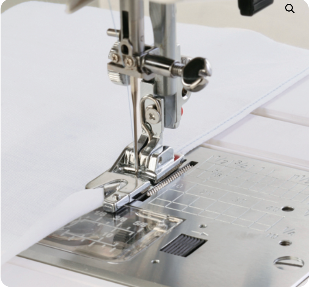 The Rolled Hem Foot is used to stitch the narrow rolled hems usually found on shirt tails, table linens and along the edge of frills. This foot is designed with a scroll-shaped feeder on top and a straight groove on the underside which determines the width of the finished hem.