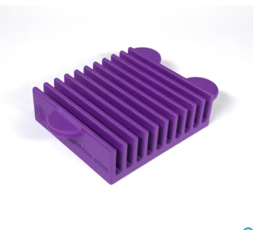 Organize your quilt rulers with our custom designed quilt ruler stands for 1/8in (3mm) rulers. Each ruler stand has 10 slots and measures approximately 4.25in long (including tabs) and is 3in wide. Non-slip feet on the bottom keep your ruler stand in place. We include tabs on the front and back to make it easy to move the ruler stand when it is loaded with rulers. The tabs are made to fit together perfectly so you can place multiple ruler stands in a row and minimize the space needed. Designed and manufactured in the USA by Purple Hobbies LLC.