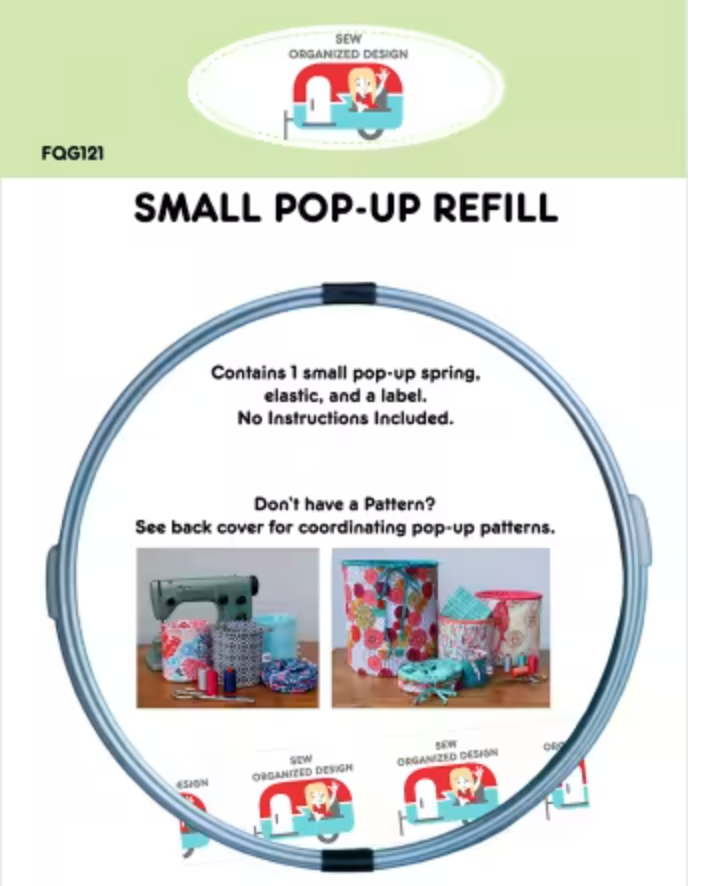 Small Pop Up Refill The Fat Quarter Pop Up is a fun little container that pops! A specially formed wire springs back into shape every time! Once you make one... you'll be hooked! 5-1/2in Diameter x 6in Tall