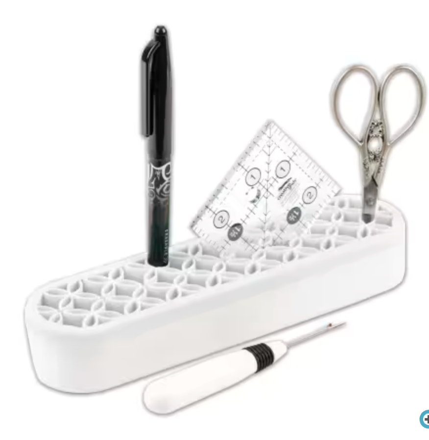 The new Stash ‘n Store is the perfect device to keep your sewing and crafting notions within arm’s reach and ready to go! Easily store marking tools, scissors, stilettos, rulers, even brushes and small rotary cutters, in an easy-to-grab upright position. The silicone pockets are smooth and offer a sturdy grip and it is also simple to clean. Size: 1.5in x 2in x 8.25in