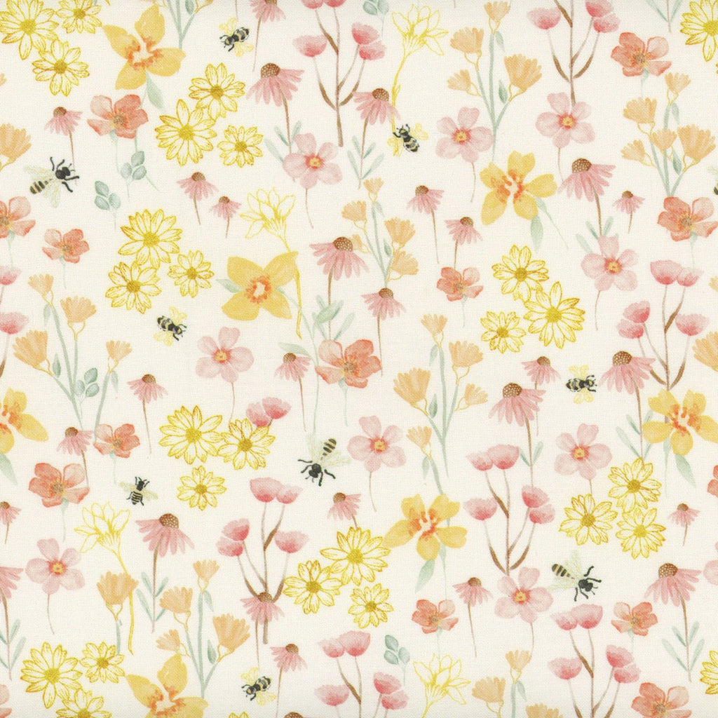 Welcome warmth and vintage charm into your living space with the delightful Home Sweet Home fabric collection by Timeless Treasures.  This collection brings a touch of nostalgia and a burst of pastel beauty to your home decor and crafting projects. This fabric is digitally printed, giving it brighter, more vibrant colors than traditional screen-printed fabrics. If you're a fan of bees and summer, this fabric won't disappoint. Try this print out in your next project!