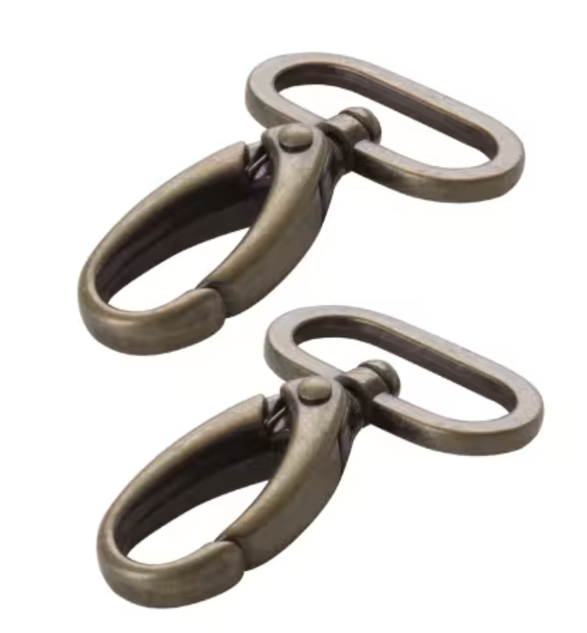 Swivel snap hooks are great for attaching handles to purses and bags or other accessories. The swivel feature keeps your handles from getting tangled and twisted. In this package your customer will get two (2) swivel snap hooks and, as a plus, a handy little case that they can reuse for pins or anything else small. The hardware packaging is bar coded for easy sale and can either be hung on a wall or stood up on a shelf. Best of all it will now only take up a few square feet of wall space and the customer can mix and match to make any project. Our hardware is beautifully finished, not simply die cast or bent wire. This results in smooth lines, no rough edges and a truly high quality look and feel. You'll love how it embellishes your bag. Every 1 1/2 inch hardware piece has a 1 1/2 inch opening for attaching strapping. We recommend covering the strapping with a coordinating fabric in order to make a truly custom look for your project. All relevant ByAnnie.com patterns include instructions for how to do this and use your fabric efficiently. Color: Brown Made of: Metal Use: Bag Hardware Size: 1.5in Included: Two Swivel Hooks