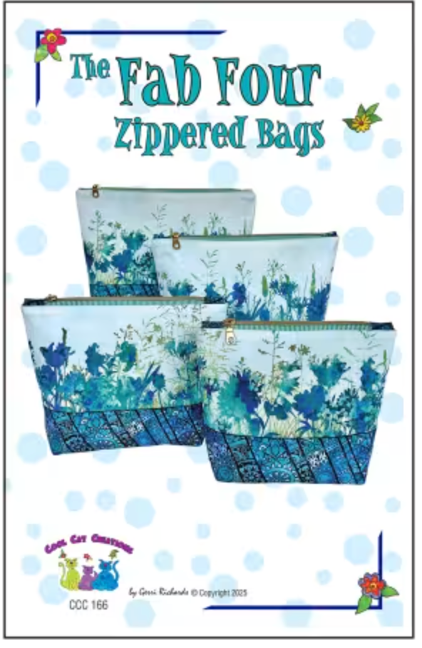 This pattern has instructions for 4 different sizes of zippered cosmetic style bags. They are fast and easy to make, perfect for gifts. Instructions for using one fabric, such as a border print, or using 2 different fabrics.