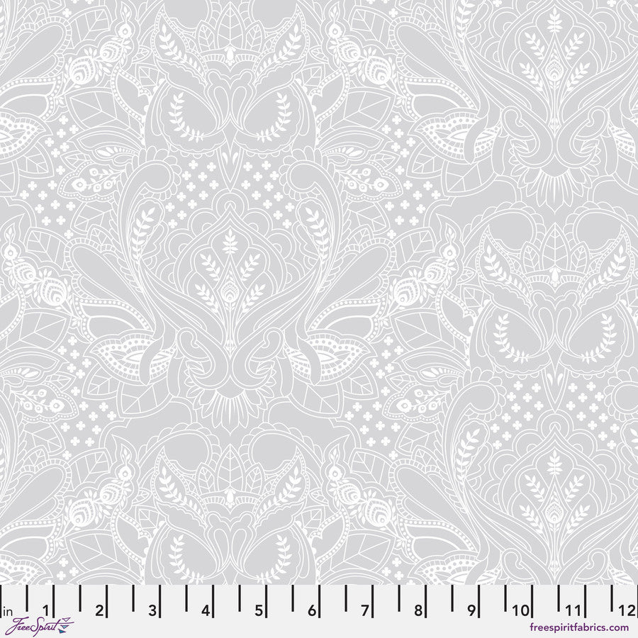 Tula Pink is celebrating her 50th collection with a new line of True Colors! In addition to three new basics in a rainbow of shades, she included three designs from her very first collection. "I didn't want to ignore the original completely, so I included three original prints as "ghost" versions printed in white on white. These prints are designed to act as a memory, a backdrop, the very foundations that the new prints were built upon."