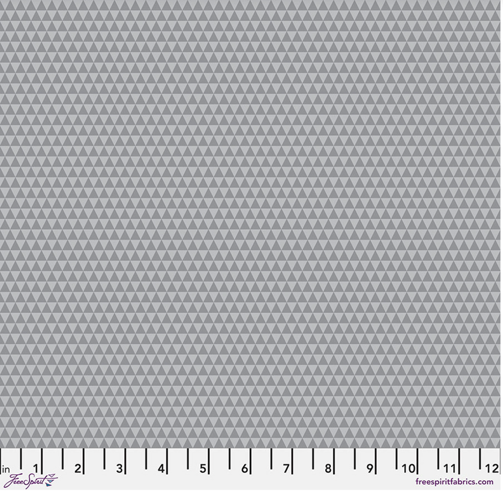 From Tula Pink:Graywork is a follow up to my black and white collection titled “Linework” from 2020. This is a neutral collection designed in various shades of gray to fill the spaces between the rainbows. Graywork began as a collection of all gray prints and slowly blossomed to include touches of color to spice things up. I find it impossible to leave something completely void of color. For the main prints of the collection I focused on animals that live their lives in shades of gray; Wolves, Bears, Snow Leopards, Puffins and Sea Lions. These eight prints are big and illustrative packed with details deigned for fussy cutting as the stars of the show. The coordinating prints are variations on existing True Colors prints with some new pieces for texture. These might be the back up dancers to the hero prints but they are essential to connecting the prints and filling in the gradient or grays. The multi colored Stripe is back on both a soft gray and a charcoal gray ground and the Poms have been added to the party in a new rainbow version to coordinate with the stripes! You will find new medium and dark shades of Fairy Dust sprinkled in amongst the classic tonal grays for backgrounds and blending. The last thing that I felt this collection really needed was something that could act like a solid which came in the form of new Tiny Dots and a brand new print of tonal repeating triangles called “Kinda Shady”. While packed with artistic details this collection is designed, first and foremost to be useful. Leave it be or add in my other collections for maximum versatility.
