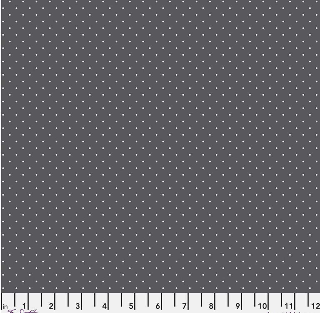 From Tula Pink:Graywork is a follow up to my black and white collection titled “Linework” from 2020. This is a neutral collection designed in various shades of gray to fill the spaces between the rainbows. Graywork began as a collection of all gray prints and slowly blossomed to include touches of color to spice things up. I find it impossible to leave something completely void of color. For the main prints of the collection I focused on animals that live their lives in shades of gray; Wolves, Bears, Snow Leopards, Puffins and Sea Lions. These eight prints are big and illustrative packed with details deigned for fussy cutting as the stars of the show. The coordinating prints are variations on existing True Colors prints with some new pieces for texture. These might be the back up dancers to the hero prints but they are essential to connecting the prints and filling in the gradient or grays. The multi colored Stripe is back on both a soft gray and a charcoal gray ground and the Poms have been added to the party in a new rainbow version to coordinate with the stripes! You will find new medium and dark shades of Fairy Dust sprinkled in amongst the classic tonal grays for backgrounds and blending. The last thing that I felt this collection really needed was something that could act like a solid which came in the form of new Tiny Dots and a brand new print of tonal repeating triangles called “Kinda Shady”. While packed with artistic details this collection is designed, first and foremost to be useful. Leave it be or add in my other collections for maximum versatility.