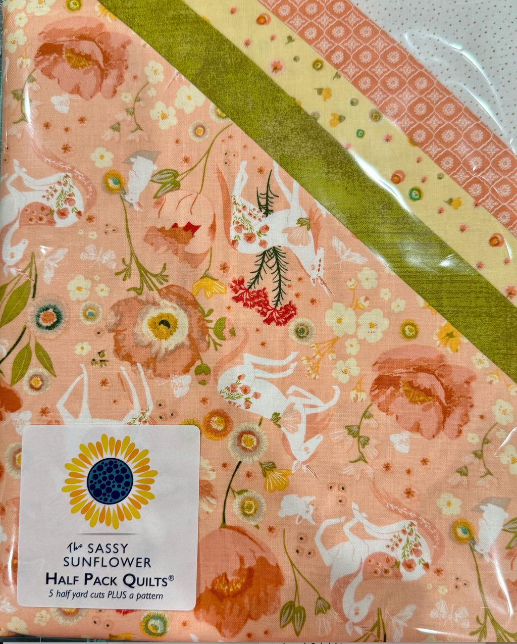 Sassy Sunflower Half Pack Quilts™ Kit Get creative with this all-in-one kit that’s perfect for making a cheerful quilt or a stylish tote. Inside, you’ll find: 2.5 yards of fabric — five half-yard cuts in beautifully coordinated colors One Sassy Sunflower Half Pack Pattern — pick your favorite from our black and white pattern options to match with your fabric bundle Whether you're quilting or crafting a tote, this kit gives you a great head start. A few things to keep in mind: Quilt projects will still need backing and binding fabrics Tote projects like the Tippy Tote require additional interfacing and batting Kits and patterns are bundled together and can’t be sold separately These kits are always full-price and not part of any sales or discounts