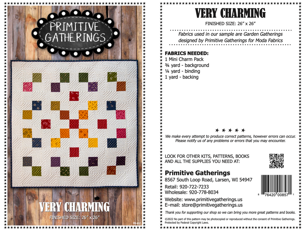 This simple little quilt can be left out all year long. 1 mini charm pack is all it takes to give this little quilt its color. It measures 26" x 26". You will need 1yd for the backing. 1 mini charm pack is all it takes to give this little quilt its color. We used Garden Gathering fabrics by Moda.