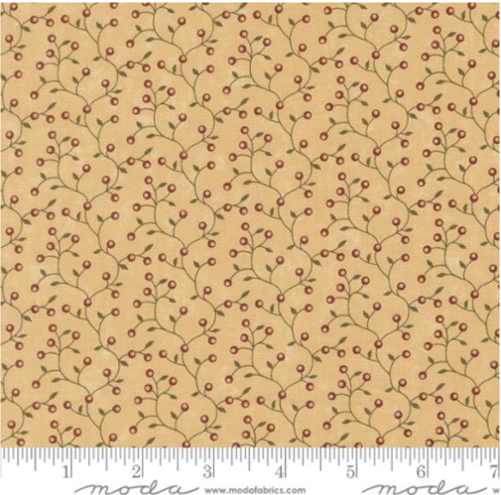 Wheatland by Kansas Troubles Quilters for Moda Fabrics evokes the serene beauty of the Midwest during the golden days of summer. This collection features a harmonious blend of warm and cool tones showcasing leaves, vines, florals, ditsy prints, and playful motifs, perfect for your next summer quilting project!