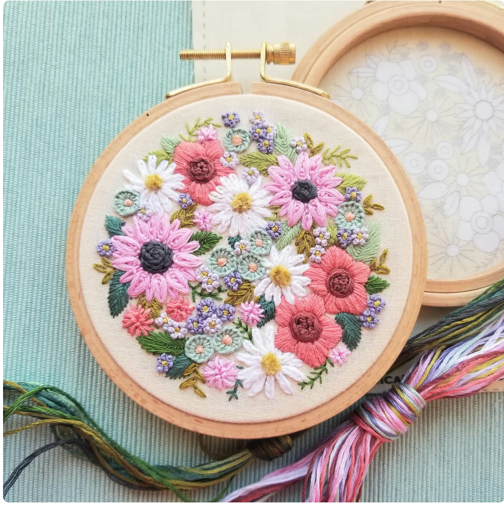 Go beyond the basics with this fun hand embroidery sampler! Practice blanket stitch eyelet, Turkey work, double detached chain stitch, chained feather stitch and more. This design will help you to comfortably grow your embroidery stitch repertoire as you stitch along with an online video tutorial.