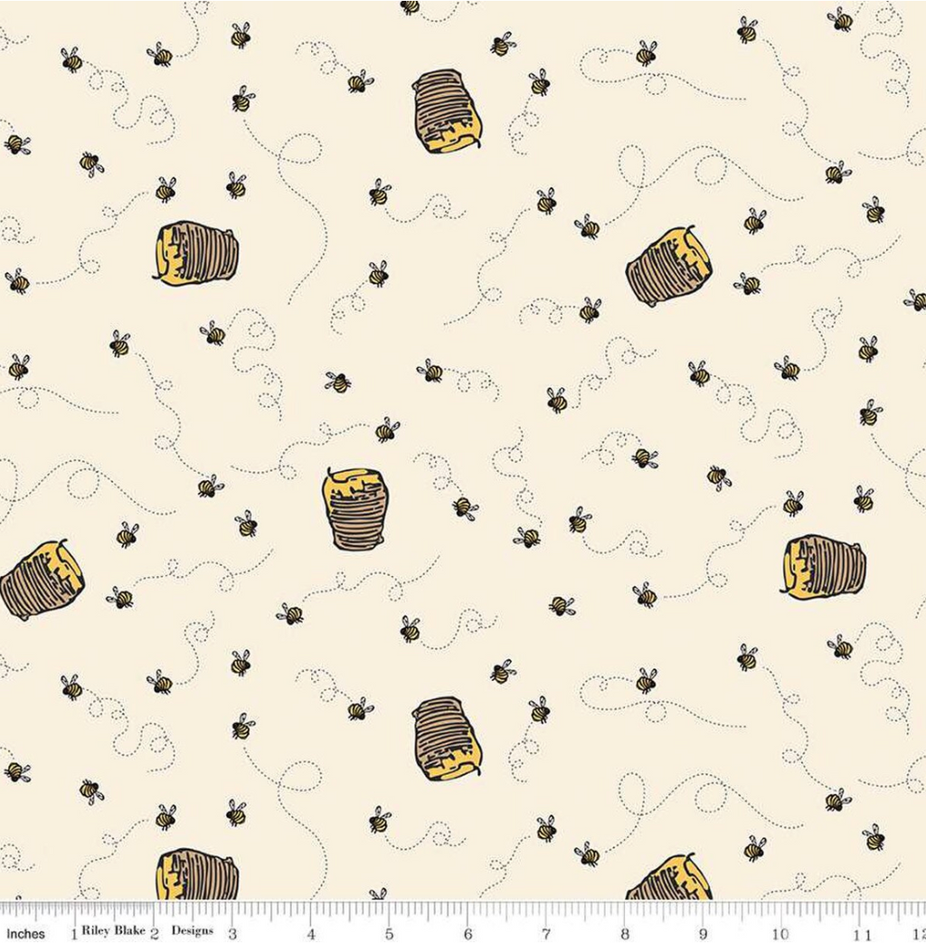 Winnie the Pooh by Echo Park Paper Co. for Riley Blake Designs is great for quilting, apparel and home decor. This print features pots of honey and bumblebees.