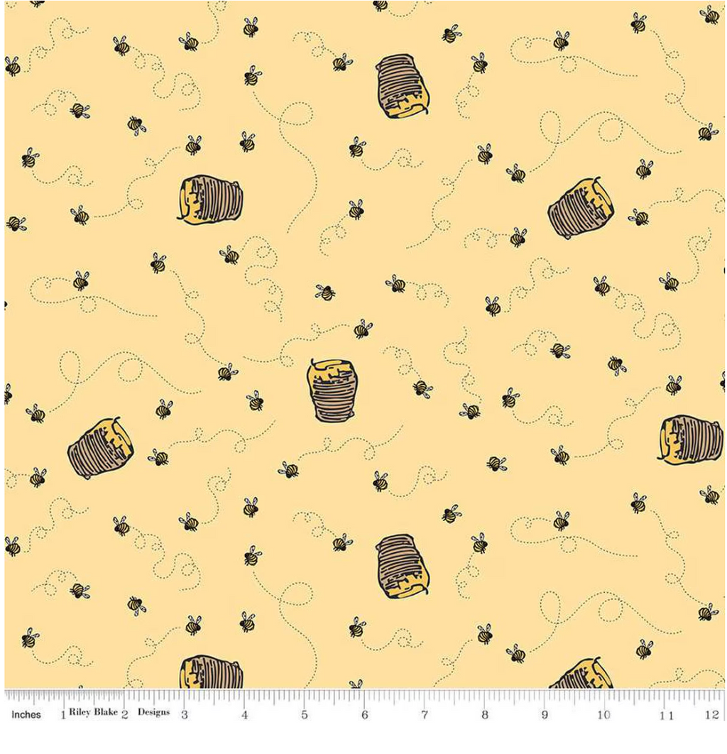 Winnie the Pooh by Echo Park Paper Co. for Riley Blake Designs is great for quilting, apparel and home decor. This print features pots of honey and bumblebees.