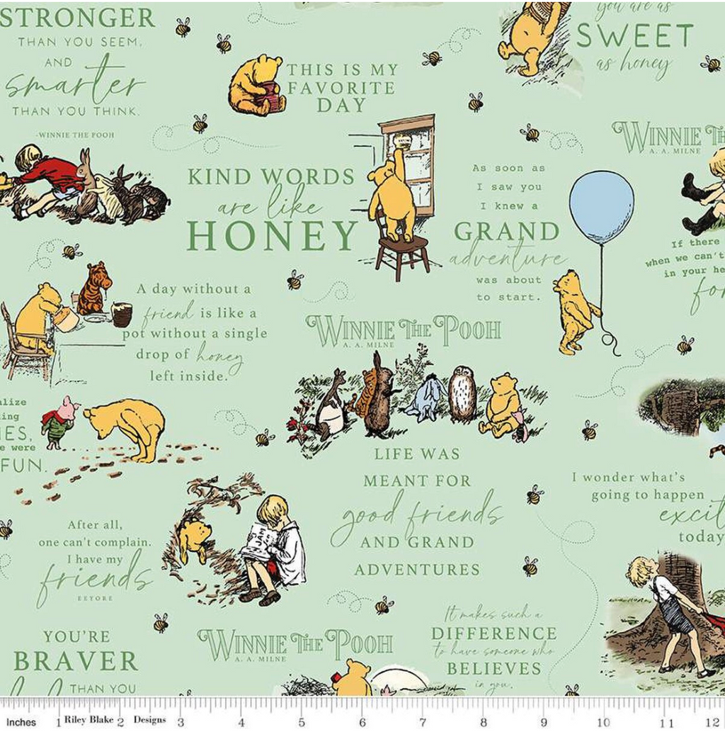 Winnie the Pooh by Echo Park Paper Co. for Riley Blake Designs is great for quilting, apparel and home decor. This print features scenes and text from Winnie the Pooh.
