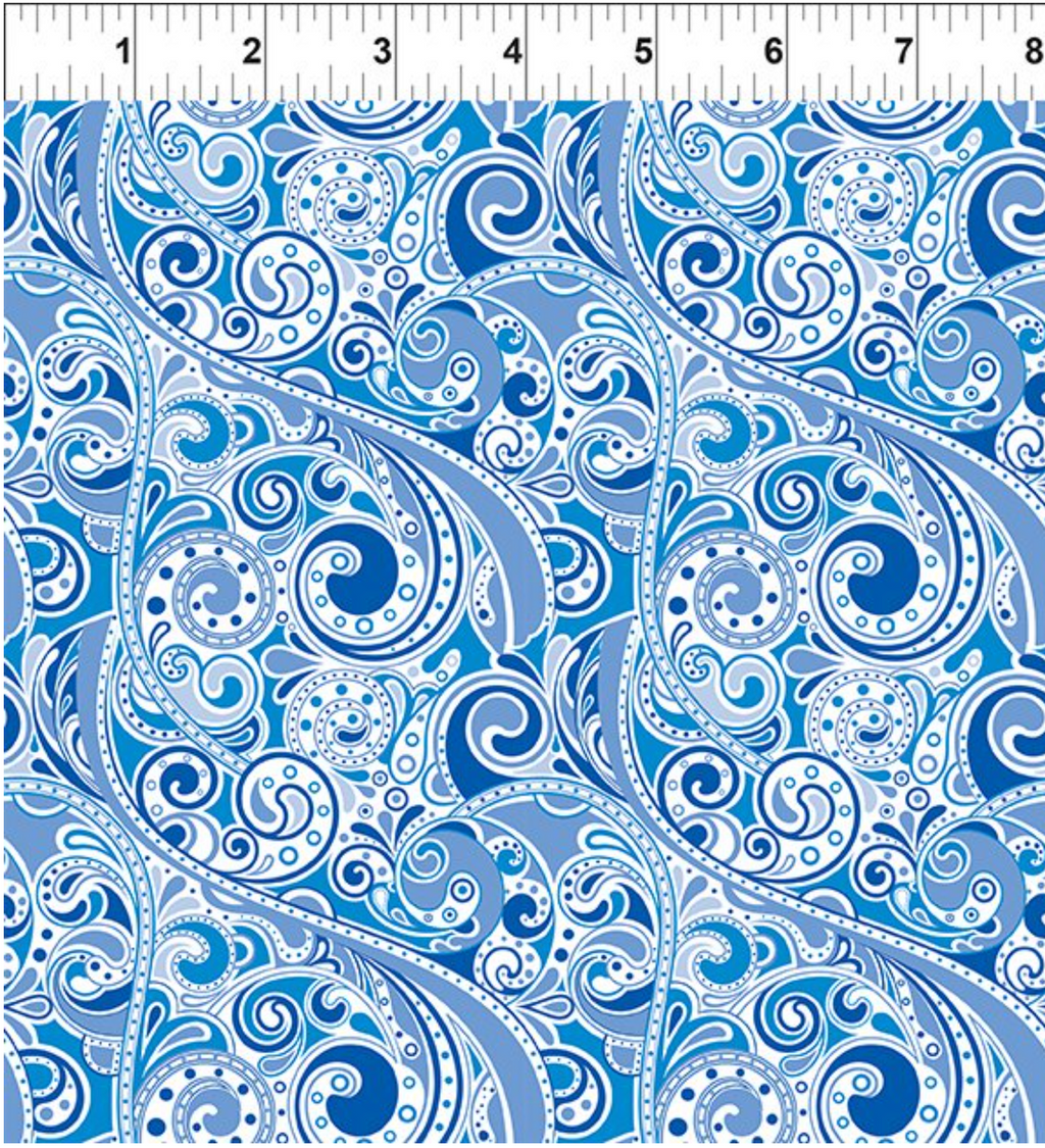 Wonders of the Ocean by Jason Yenter for In The Beginning Fabrics features fish, coral, reef, waves, jelly fish, leaves, water, turtles, waves, shells, sand dollars, and swirls in aquatic shades of cream, blue, navy, teal, green, aqua, grey, white, and green.