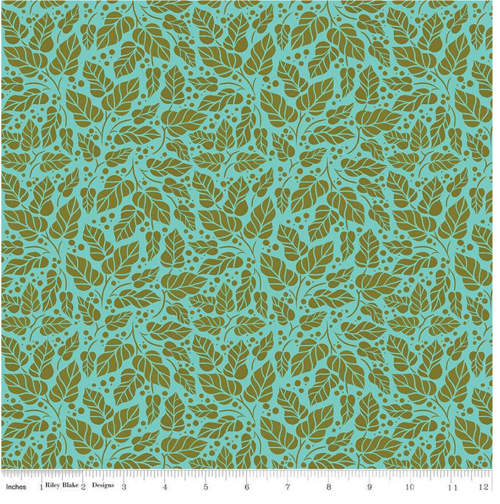 Zinnias by Lila Tueller for Riley Blake Designs is great for quilting, apparel and home decor. This print features leaves and dots.