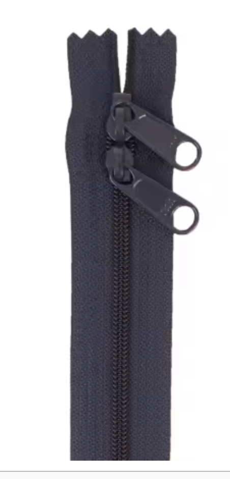 30in Double Slide Handbag Zipper is perfect for purses, totes and bags. The 4.5 nylon coil is strong and durable zip after zip and the wide zipper tape make for easy installation. Color: Blue Length: 30in Tape Content: Nylon